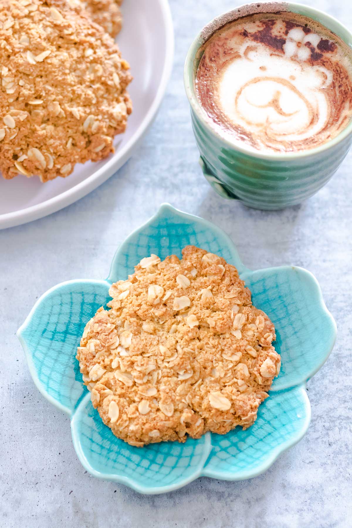 - Desiccated coconut – the modern touch to the Anzac biscuit. As noted in the history above, this ingredient wasn’t in the original recipe. I love the added flavour though!