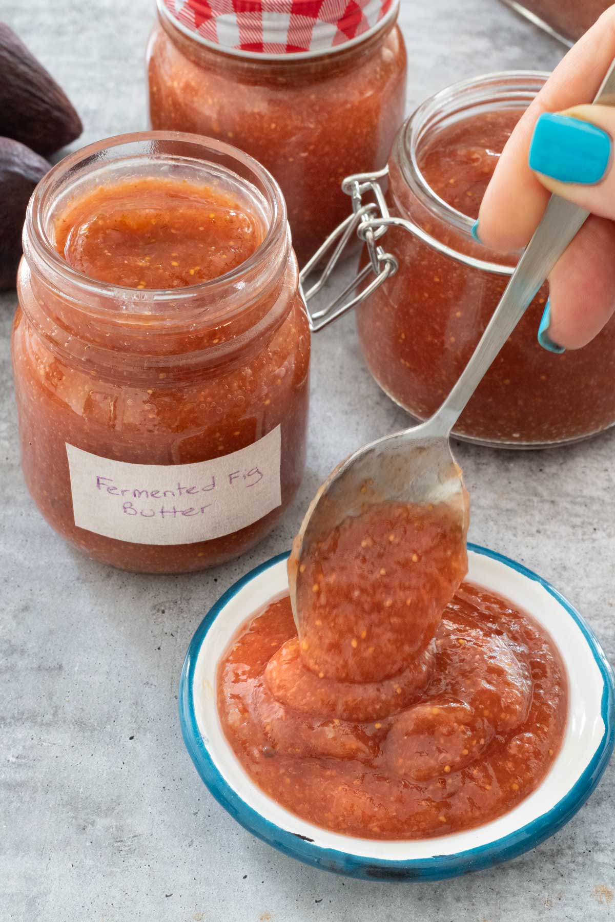 - Put the fermented fig butter into a clean jar, wipe the rim and put the lid on. Store it in the fridge for up to 3 months (or more!).