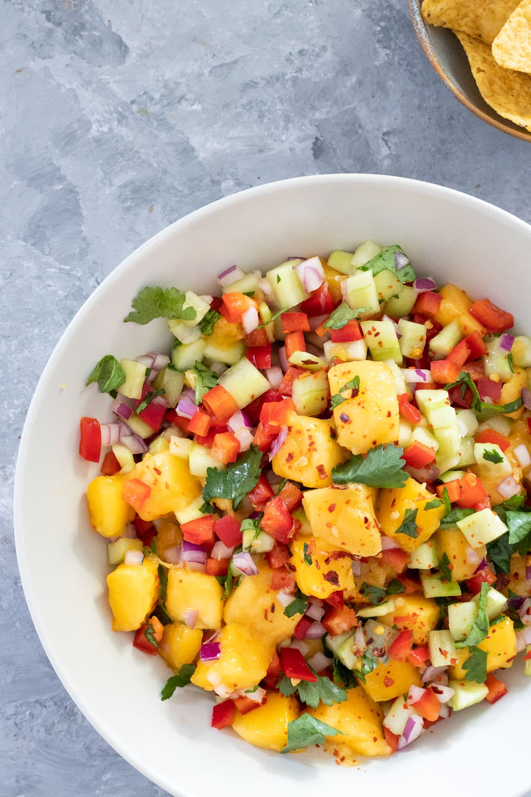 Turn this into a cucumber mango avocado salad by add in one peeled and chopped avocado.